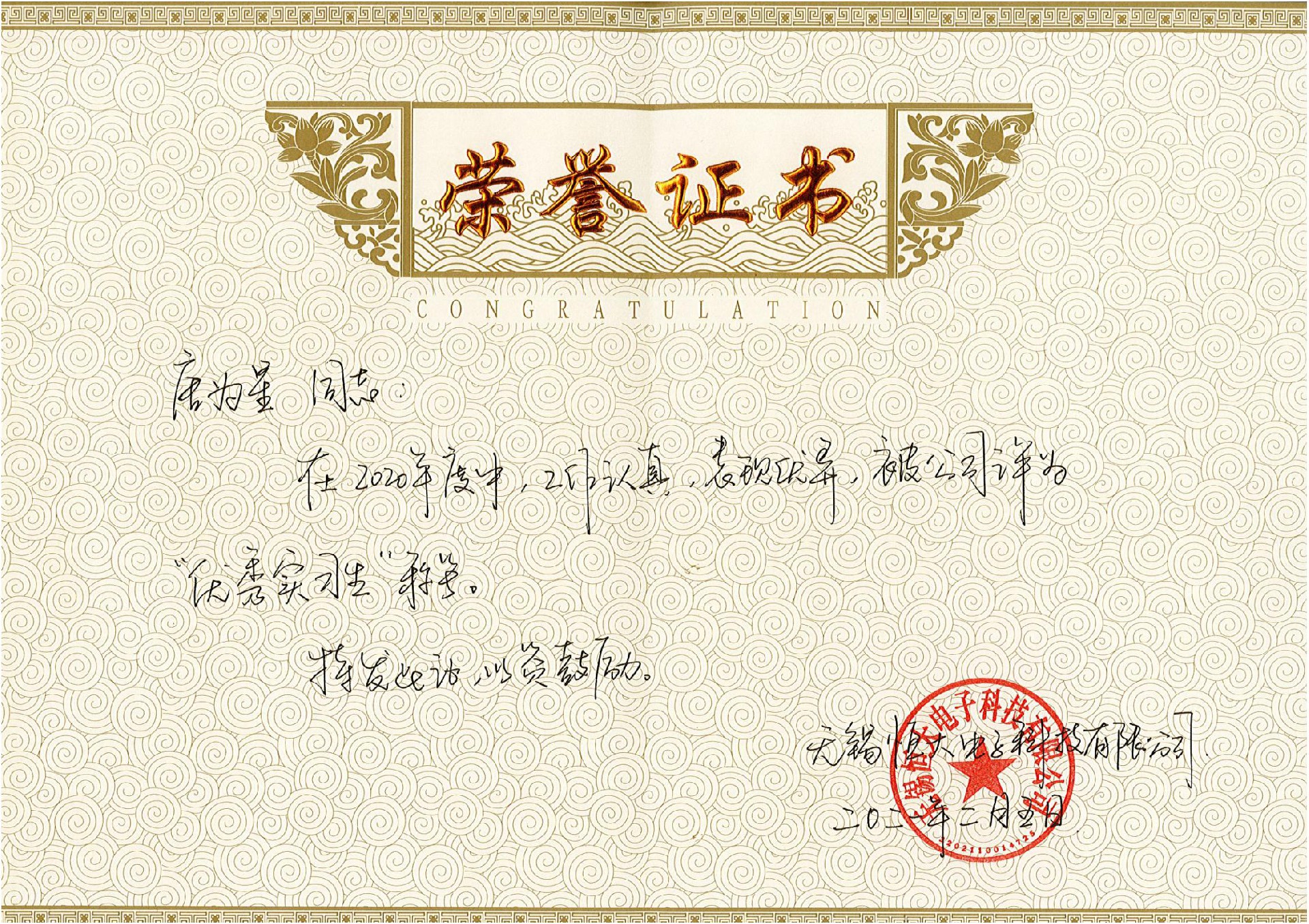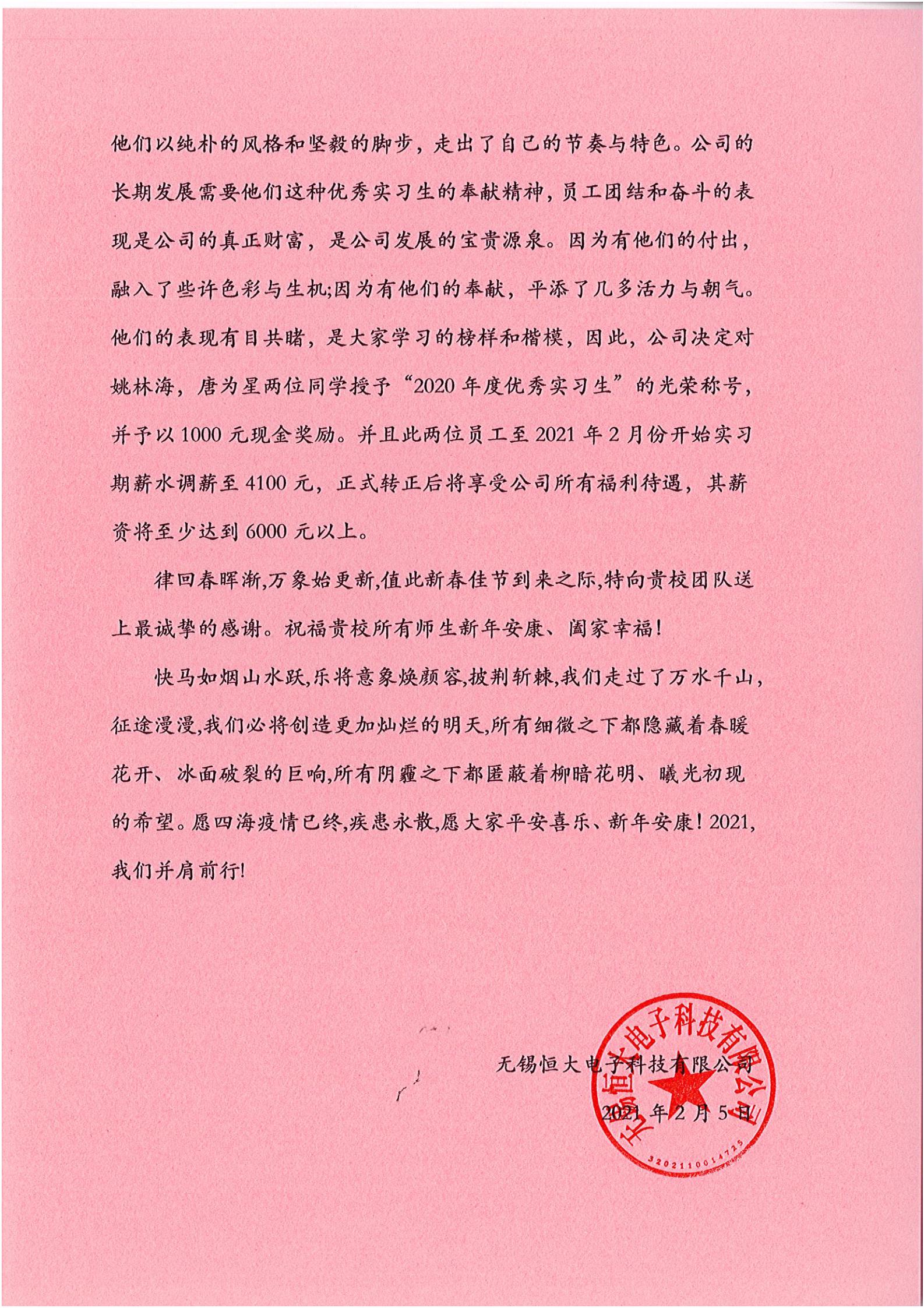 會(huì)上(shàng),無錫合利達電子科技有限公司行(xíng)政部經理(lǐ)唐蓉對(duì)鳳凰職業(yè)中專學校(xiào)的(de)實習(xí)生(shēng)們進行(xíng)了(le)感謝(xiè),并對(duì)他(tā)們認真負責、勇于創新的(de)工(gōng)作(zuò)态度給予充分(fēn)肯定和(hé)表揚,并著(zhe)重表揚了(le)姚林(lín)海(hǎi)、唐為(wèi)星兩位學生(shēng),授予“2020年(nián)度優秀實習(xí)生(shēng)”的(de)稱号,并給予兩位突出表現(xiàn)的(de)學生(shēng)相(xiàng)應的(de)獎勵,以資鼓勵。随後,無錫合利達電子科技有限公司項目經理(lǐ)匡威發表講話(huà),肯定了(le)鳳凰職業(yè)中專學校(xiào)12位實習(xí)生(shēng)的(de)付出;最後,鳳凰職業(yè)中專學校(xiào)學生(shēng)科(kē)的(de)傅老(lǎo)師(shī)表示十分(fēn)欣慰,并感謝(xiè)無錫合利達電子科技有限公司的(de)肯定,希望未來(lái)繼續合作(zuò)共赢,共創輝煌。